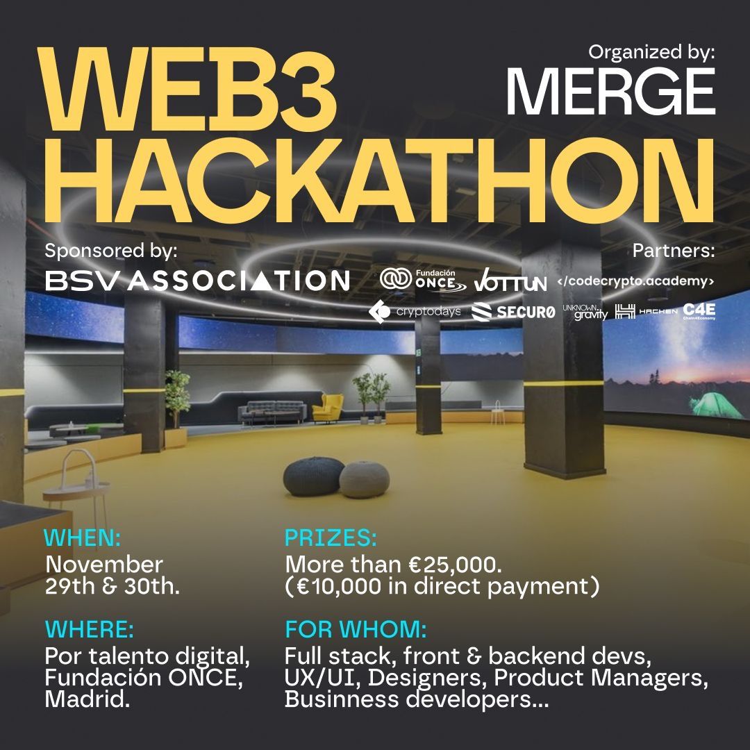 Los días 29 y 30 de noviembre de 2025, Merge Madrid organizará en Madrid el Web3 Hackathon, con el patrocinio de Talento Digital y Fundación ONCE. Un evento que promete convertirse en uno de los encuentros más relevantes del ecosistema