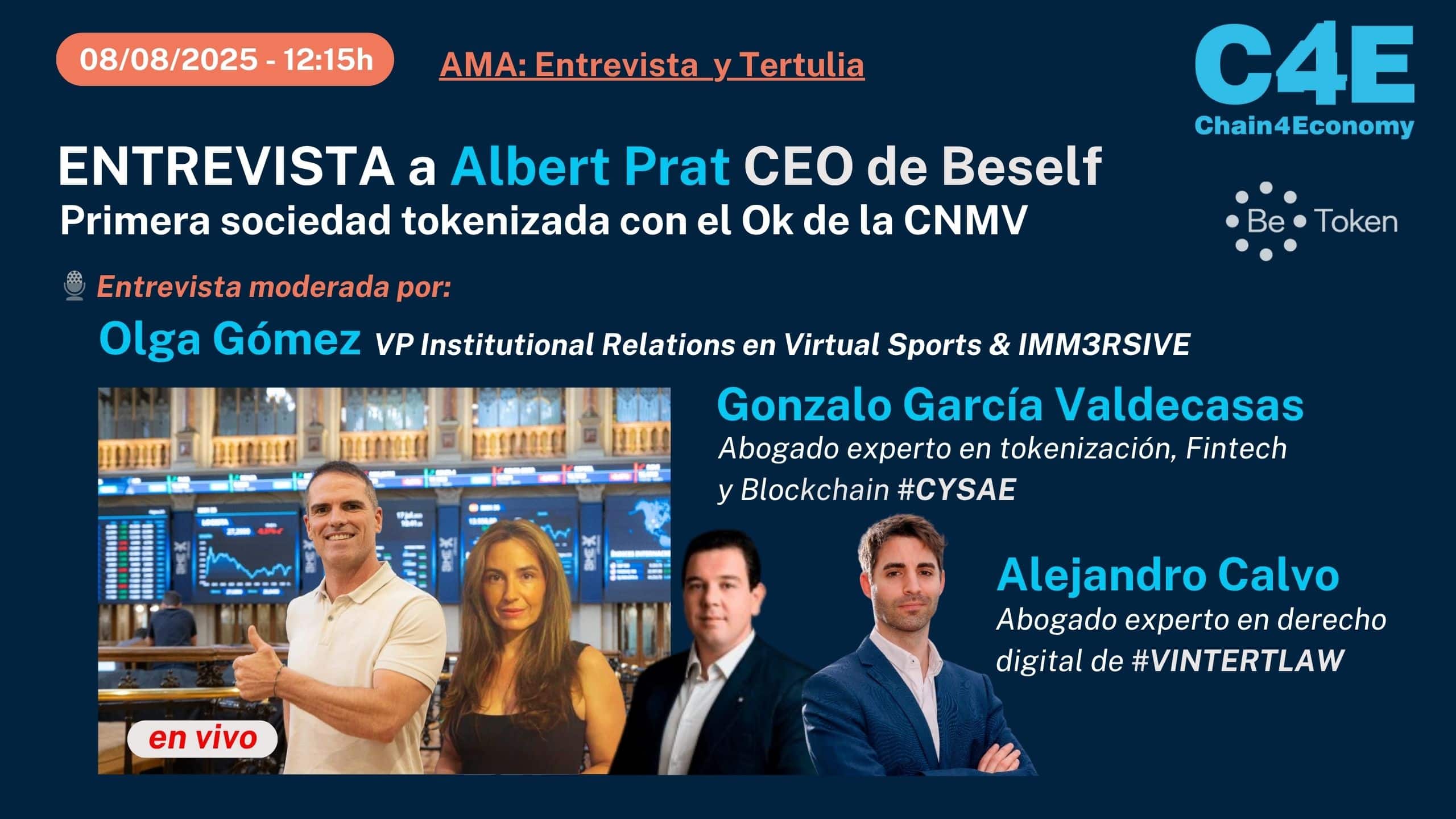 La noticia de este verano en España: La CNMV ha aprobado la primera sociedad tokenizada: Beself de Albert Prats, su CEO nos hará un AMA el próximo viernes 8/8/25 EVENTO STREAMING ?️ Entrevista a Albert Prats CEO de Beself,